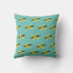 Throw pillow with an olive blossom pattern on light teal coloured background, designed by Alan Skyrme.