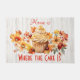 Verwelkom uw gasten met een zoete en speelse touch met behulp van deze 'Home is Where the Cake Is' deurmat. Met een heerlijke cupcake omringd door levendige herfsten en bladeren, voegt deze charmante deurmat een gezellige en uitnodigende sfeer toe aan uw huis. Ideaal voor de herfst, Thanksgiving of wanneer u uw liefde voor taart en een warm, gastvrij huis wilt laten zien. Voeg een vleugje zoetheid en seizoensgebonden charme toe aan uw voordeur met deze prachtige mat.