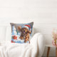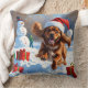 Tibetaanse Spaniel loopt in de sneeuw met kerst Pe Kussen