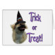 Sera-t-ce des Tricks ou des Traitements pour cet Halloween ? Notre design de vacances a votre race de chien préférée, l'Espagnol Tibétain, portant un casquette de sorcière. Ajoutez un peu de "Hocus Pocus" à All Hallows cette année !