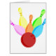 Eenvoudige illustratie van de kleurrijke 10-pins bowlingskittles die door een bowlingbal worden neergeslagen. Afbeelding beschikbaar op diverse giften en producten. Wenskaarten. Notitiekaarten.
