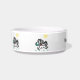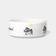 Een White Medium Ceramic Pet Bowl, met de optie om aan te passen = " Uw Dog's name hier! met tekeningen van een striphond, Tiffany en haar Frisbee, = 4 keer rond de kom, = (Kunst door P.J.M.).
