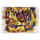 Un portrait aquarelle stylisé d'un tigre. Les jaunes vifs et les bleus et violets profonds contrastent les uns avec les autres.