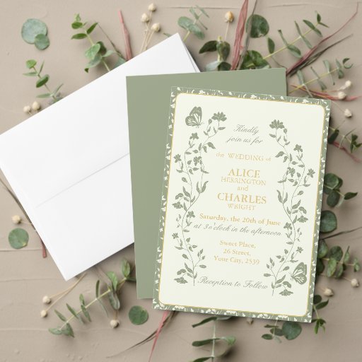 Vintage Floral Butterfly Sage Green Wedding Ontworpen door Trefail Designs