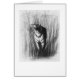 Een mooie koolsketch van een tijger in lang gras. Zwart-wit.