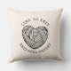 A cute illustrated, time to knit themed throw pillow featuring a ball of yarn. The text reads: time to knit and knit purl repeat. A light pastel peach background. A gift for an avid knitter. A unique gift for a knitter or crafters studio.