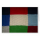 Tissu à motifs, blanc rouge et vert au milieu. D'autres couleurs l'entourent. Tissé.