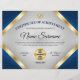 Bekroond iemand met deze Professional & Elegant 8.5x11 Certificate of Achievement Award Flyer met goud & blauwe kleurtonen en een grijze gradiënt achtergrond. De medaille wordt uitgereikt met twee gouden medailles.