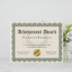 Achievement Award in elegant green, tan en goud. rosette woodsnijkunst grens met klassieke stijl. Show uw trots en enthousiasme over de inspanningen van uw studenten en personeel met dit klantgerichte, gepersonaliseerde certificaat. Voeg online uw eigen tekst toe, en ordecertificaten die voor uw ceremonie worden gemaakt.