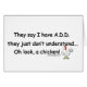 Ze zeggen dat ik ADD heb, ze begrijpen het gewoon niet... Oh kijk, een kip! - Het Gezegde van de Humor van de stoornis van de aandacht.