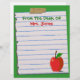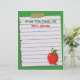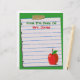 Top 10 Letterheads Views Zazzle Award! Personnalisez cette en-tête personnalisée, "From The Desk Of", avec n'importe quel nom sur ce papier carnet déchirée, collé à un arrière - plan vert avec une illustration de pomme rouge sur le fond. Ou, laissez le texte entièrement de côté. Modifiez facilement la couleur et le style de texte et la couleur arrière - plans. Il suffit de cliquer sur "Customiser", puis "modifier" et "arrière - plan" pour changer la couleur. Fait un grand cadeau personnalisé pour les enseignants. Personnalisez-en aujourd'hui !