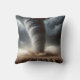 Een tornado wervelt heftig boven een tarweveld met donkere wolken van storm die boven het hoofd opdoemen en rondvliegend puin