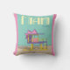 Ce coussin est parfait pour montrer votre amour de Miami vintage. Il possède une tour de maître-nageur rose dans son style Art déco. Le coussin a une garniture arrière - plan rose sur les côtés et l'arrière du coussin est rose avec des rayures jaunes.
