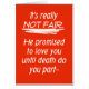 Iedereen die een scheiding heeft doorgemaakt, weet hoe pijnlijk het kan zijn. Het is zo'n moment waarop je echt een lach kan gebruiken. Deze grappige, sarcastische scheidingspas vult die rekening. De fel oranje-rode kaart heeft grote vette witte letters op de voorkant die zeggen, "Het is echt niet eerlijk. Hij beloofde van je te houden tot de dood je scheidt..." En van binnen zegt hij: "En dan weigerde te STERVEN." Het is donker, het is grappig, en het is precies wat de dokter bestelde. Stuur deze grappige scheidskaart naar iemand die een breuk maakt en een beetje lichtheid in een slechte situatie brengt.