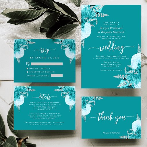 Turquoise Silver Floral Script Wedding SuiteConçu par Akhates Designs