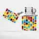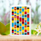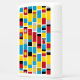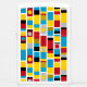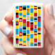 Een ontwerp bestaande uit strepen met handbeschilderde banden, blokken en kleurvlekken in tinten van rood, ambergeel, diep goud, blauw, grijs zwart en wit. Geïnspireerd door geverfde toppen.
