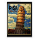 La tour penchée de Pise en Italie a un look spectaculaire dans ce design d'inspiration vintage. La tour se penche sur un fond extraordinaire de nuages sur un ciel bleu dans l'affiche vintage.