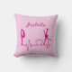 Fille coussin de patinage artistique pour décorer une chambre de patin à glace - Pour être entourée de sa passion Couleurs : Tournez à chaud sur un arrière - plan rose clair.Design: Ligne de battement de coeur + Silhouettes de skaters faisant Biellmann et Arabesque + personnalisez avec le nom du patineur.
