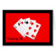 Une photographie de 4 cartes à jouer - 3 de pique, 4 de diamant, 5 de pique et 6 de coeur - fait l'objet de mon "Tourner 18 est une grosse affaire !" Les cartes, qui totalisent 18, apparaissent vibramment contre un arrière - plan rouge vif.