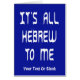 Texte "IT'S All HEBREW TO ME" dans une police hébraïque fausse. Une parodie du dicton "C'est tout grec pour moi" utilisé quand quelque chose est incompréhensible.