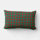 De vierkant gooit de kussen met een traditioneel kerstpleister patroon in helder rood en groen, met zwarte accenten. Ronde en rechthoekige werpkussens die bij elkaar passen.