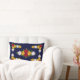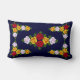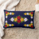 Een kussen met de rode, gele en witte rozen van de folkstijl, die van oudsher werden geschilderd op Britse narrowboten, hier op een donkerblauwe achtergrond die kan worden veranderd in een andere kleur.