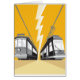 L'illustration d'un cru et le tramway moderne forment le tram vu d'un angle faible avec le boulon de foudre au centre fait dans le rétro style.