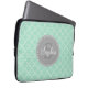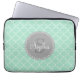 Trendy Mint Trellis Pattern Gray Monogram Laptop Sleeve