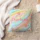 Trendy Modern Girly Glitter Floral Personalized Sierkussennen Cushions kenmerkt een kleurrijke moderne abstracte waterverf achtergrond in blauw, groen, geel, oranje en roze met gouden glitter en roze bloemaccenten. In het centrum is uw douane gepersonaliseerde naam in roze manuscript. Personaliseer door de tekst in de tekstvakjes uit te geven verstrekt. Ideaal voor verjaardagsgeschenken, kerstcadeaus en feestgeschenken of gewoon voor gepersonaliseerd thuisdecor. Ontworpen door ©Evco Studio www.zazzle.com/store/evcostudio