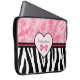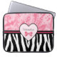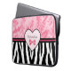Trendy Pink and Black Zebra Pattern Bow and Name Laptop Sleeve