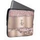 Trendy Roos Gold Diamonds Glitter Monogram Laptop Sleeve