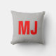 Trendy unieke grijs rood vet monogram naam initial kussen