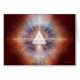 Gedetailleerde rode mandala met witte driehoek in het midden, boven een zittende meditator. Door Daniel B. Holeman