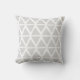 Coussin décorative élégante et sophistiquée en motif de treillis gris clair et blanc triangles géométriques.