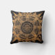 son coussin audacieux présente un mandala de sunburst d'inspiration tribale dans les tons ocre riches sur un arrière - plan noir profond. Les lignes géométriques dessinées à la main créent un sens du rythme et de la force. Un énoncé pour tout espace qui allie tradition et design saisissant.