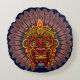 Tribal Warrior King Ritual Mask omringd door een Feathers kroon ritueel sierkleding. Zuid-Amerika / Afrika / Oceanië Inheemse tradities en cultuur. Oorspronkelijke vectorillustratie copyright BluedarkArt TheChameleonArt.