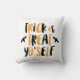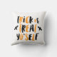 Cute Halloween gooit kussen met de uitdrukking "Trick or treat Yo'self" in zwart en oranje handschrift met feestzwarte vlekken rond de tekst.