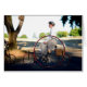 Madame montant le tricycle rotatoire de haut-roue de roadster de 1880s-style Rudge, carte intérieure de citation.