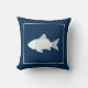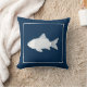 Decoratief gooien van kussen met witte vis op de blauwe achtergrond van de marine. Zie alle coördinerende design bij Sandy Feet Studios.