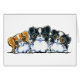 Tekening door Andie van drie kleuren Japanse Chin-honden: rood/wit, zwart/wit en zwart/wit met beige punten.