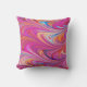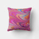 Kussen met een cool trippy psychedelisch ontwerp. Roze, sinaasappel en blauwtinten die allemaal ronddraaien. Retro hippie vibe.