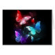 Trois papillons lumineux, rouges, violets, verts, texturés, nocturnes sur arrière - plan noir lumineux.