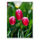 Trois tulipes roses se prélassent au soleil du matin. Notez que cette carte peut être customisée avec votre inscription personnelle.