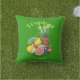 Pillow in a collage of colorful tropical fruits including pineapple, papaya, mango, gogi berries, kiwi, and lime, with a tropical theme of rich textures and lush foliage.