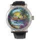 Tropical Sunset Oasis Vibrant Beach Wall Horloge