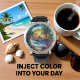 Bring the breathtaking beauty of a tropical paradise into your home with this stunning wall clock. The vibrant artwork captures a serene beach sunset, where golden hues meet the deep blue of the ocean, adorned with graceful waves and swaying palm trees. This decorative timepiece embodies the essence of a perfect vacation, creating a relaxing seaside ambiance in any room. Its artistic design and colorful illustration make it a captivating focal point, perfect for coastal homes or for those who dream of island getaways. A true art piece for your wall, it offers a sunny, summer vibe year-round.
