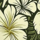 A tropical light yellow and green leaf pattern with buoyant light yellow blooms.