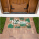 Tropisch groen bruin laat script welkom deurmat