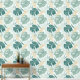 Tropische bladeren in groen en geel met een witte paisley patroon overlay.