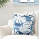 Tropisch modern blauw wit palmblad kussen